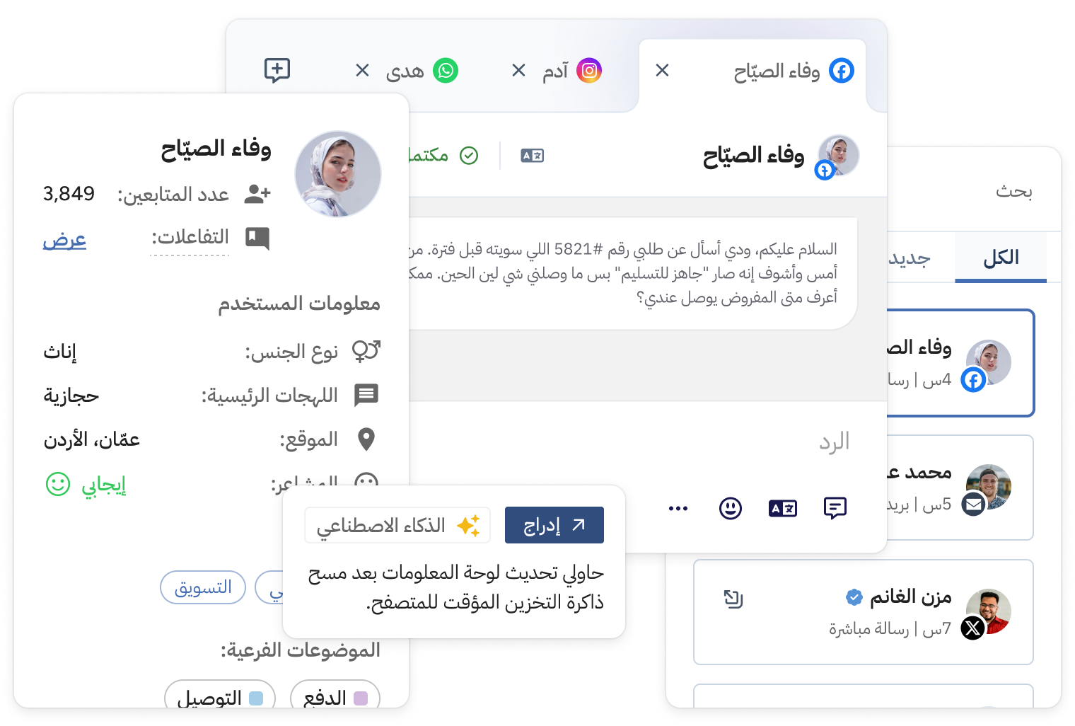 وحّد استفسارات العملاء في صندوق وارد موحّد لاستيعاب السياق الكامل لكل محادثة وتقديم ردود دقيقة وفورية تلبي احتياجاتهم الفعلية.